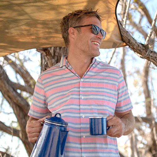 Captain Jesse LeBoeuf and his wife, Mallory, are basically family here at vineyard vines. And for good reason—Jesse is Shep’s captain. “I got introduced to Shep about 6 years ago,” Jesse says. “We started fishing a few times a year, then 50 days a year, then it was 100 days a year. Before I knew it, I was his full-time captain.”